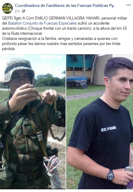 La víctima fue identificada como Emilio German Villagra Yahari, de 36 años, quien se desempeñaba como Sargento Ayudante de Comunicaciones de las Fuerzas Armadas.