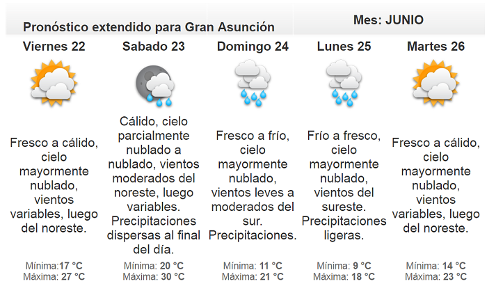Finalizando el sábado se esperan precipitaciones en el sur e incluso en el centro de la región Oriental y el Centro Sur del Chaco paraguayo.