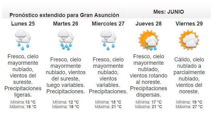 El ambiente será predominantemente fresco, con sensaciones frías en el centro y sur de la Región Oriental.