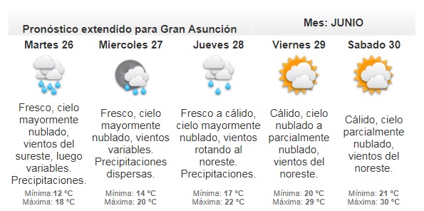 La Dirección de Meteorología anuncia que este lunes será fresco, con el cielo nublado y vientos del sureste.