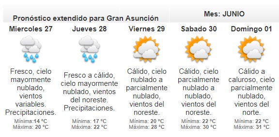 La Dirección de Meteorología anuncia que este martes se presentará fresco con el cielo nublado a nublado.