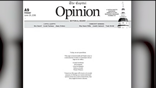 Las víctimas fueron identificadas como Gerald Fischman, jefe de la página editorial, Rob Hiaasen, columnista y editor de The Capital Gazette, John McNamara, periodista y editor de The Capital Gazette, Wendi Winters, reportera y Rebecca Smith, asistente de ventas de The Capital Gazette, quien había sido contratada recientemente.