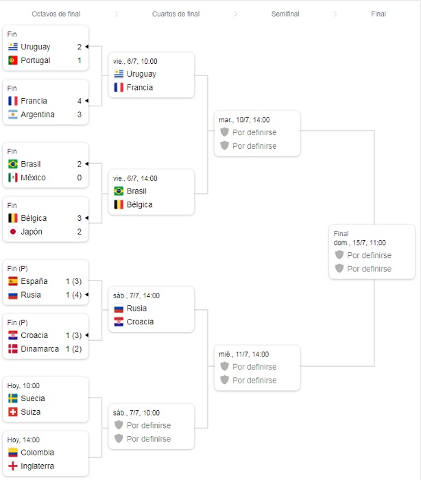 Así están los cuartos de final en el Mundial de Rusia. Foto: FIFA World Cup.
