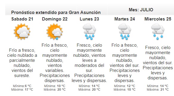 No se descartan lluvias de variada intensidad, en especial en los departamentos del sur del país.
