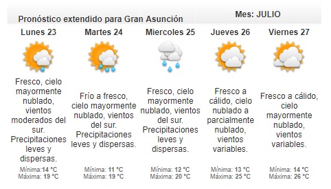 La jornada se presentará fría a fresca, los vientos soplarán del sector sur.