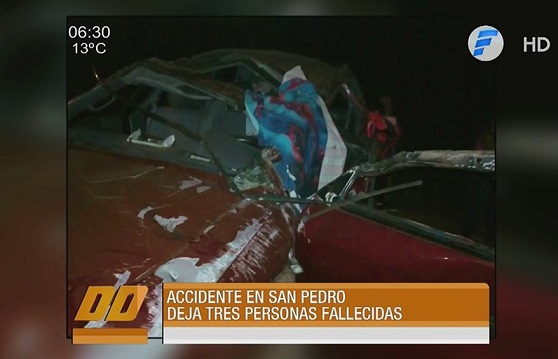 Fatal accidente en San Pedro. El accidente se produce tras una mala maniobra y deja a tres personas sin vida#DíaADíaPy #TelefuturoPy pic.twitter.com/17aagG9kL7