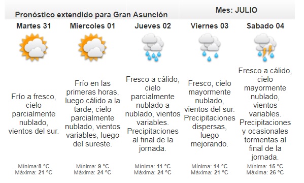 No se anuncian precipitaciones, sin embargo las lluvias podrían llegar durante la jornada del jueves.