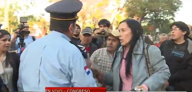 Según indican los ciudadanos denunciantes, la policía permitió el ingreso a las adyacencias del parlamento a los adherentes del diputado José María Ibáñez.