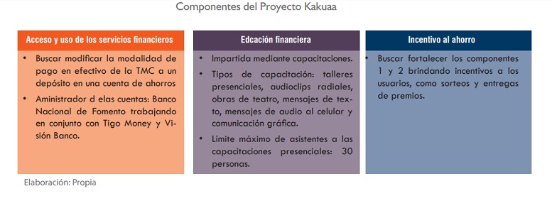 Manifestó que el Proyecto Kakuaa está compuesto por tres componentes; acceso a servicios financieros, educación financiera e incentivo al ahorro.
