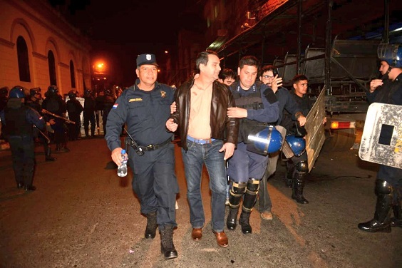 Manifestantes que se encontraban en la plaza del Congreso Nacional repelieron al expresidente de la República, Federico Franco. El liberal estaba en compañía de su hijo, Freddy Franco.