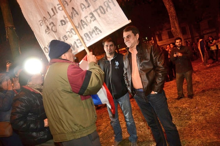 Una importante cantidad de personas coparon, este lunes, la Plaza de Armas, pidiendo la renuncia de Ibáñez, quien utilizó dinero público para pagar a sus caseros y reprobar el acuerdo entre Horacio Cartes y Mauricio Macri con relación a la Entidad Binacional Yacyretá.