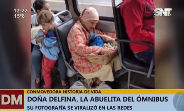 La mujer  en uno de sus viajes rumbo a Asunción fue captada en una fotografía por un pasajero que quedó impresionado. Luego la imagen se hizo viral en redes sociales.