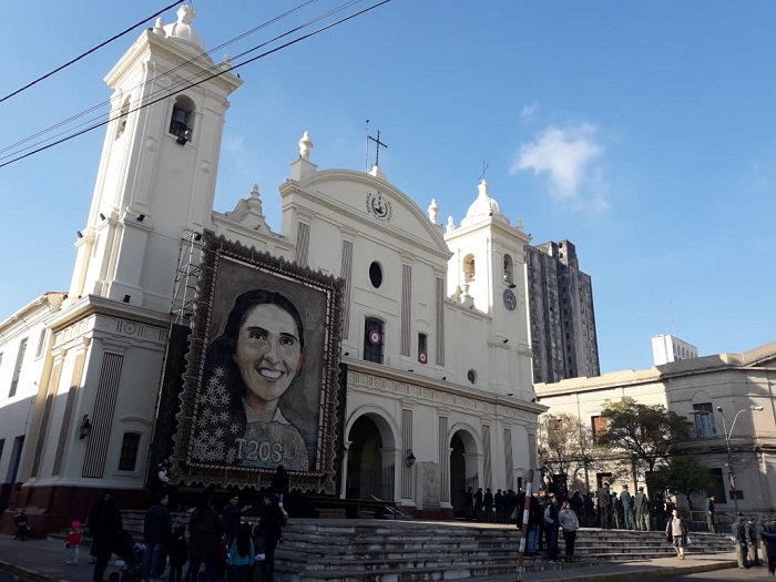 Por pedido del Arzobispo de Asunción, Monseñor Edmundo Valenzuela, se instaló el retablo frente a la Catedral de Asunción.