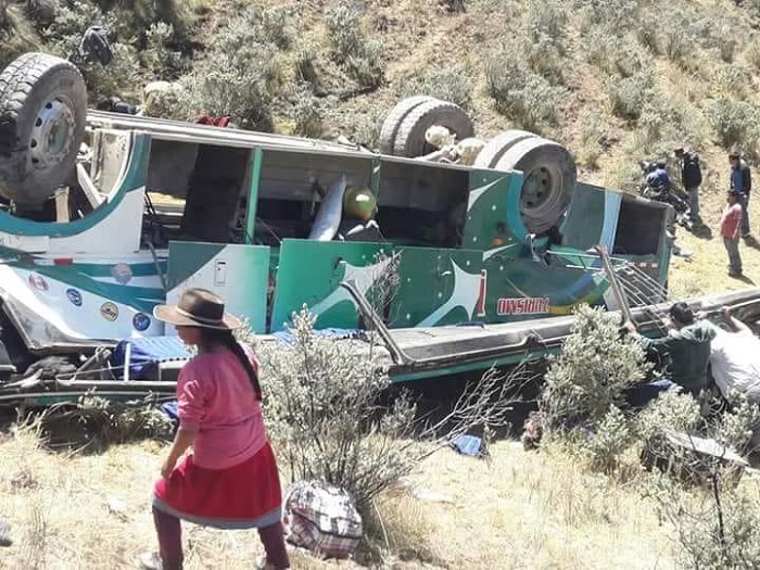 El autobús de la empresa de transporte Rosario, que iba con destino a Lima, cayó a un abismo de 100 metros de profundidad, aproximadamente.