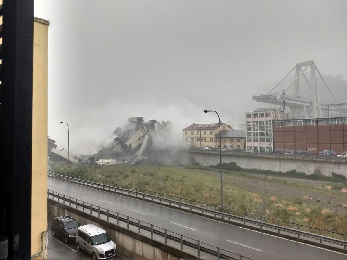 Según informó El Mundo de España, parte del conocido como puente Morandi cayó debido a una falla en la estructura. Las dos vías del puente en ambos sentidos cayeron al vacío, en plena tormenta.