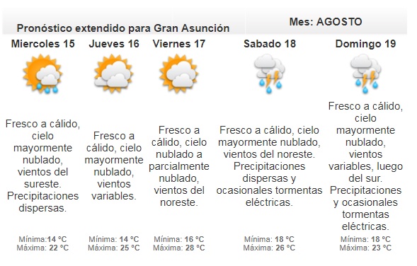 Para este martes se estima una mínima de 15 grados y una máxima de 23. El cielo se presentará parcialmente nublado, y los vientos soplarán del sector sur.