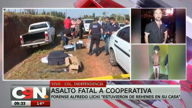 Luego se dirigieron hasta la cooperativa a bordo de la camioneta del gerente, el guardia del sitio identificó el vehículo y no sospechó que se trataba de un asalto, cuando los ladrones entraron a la cooperativa con los dos rehenes, el guardia fue desarmado.