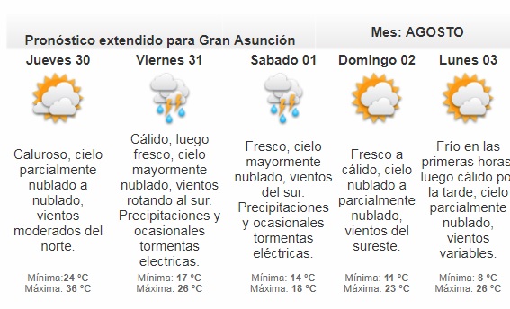 Para este miércoles se estima una mínima de 24 grados y una máxima de 35. El cielo se presentará despejado, y los vientos soplarán del sector norte.