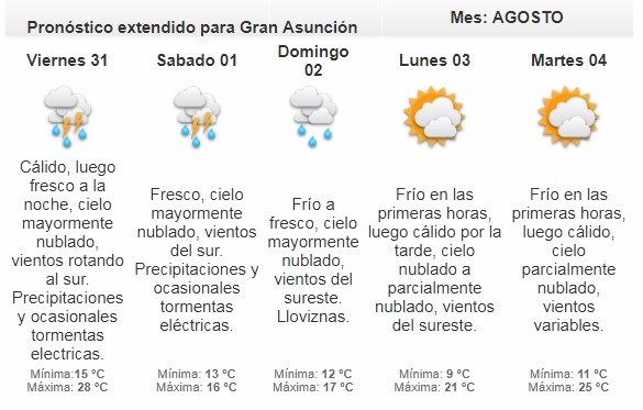 La Dirección de Meteorología pronostica que esta jornada se presentará cálida a calurosa. Los vientos soplarán del sector norte.
