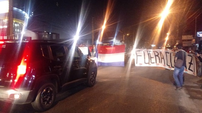Este martes, en horas de la noche, efectúan manifestaciones sobre la avenida Eusebio Ayala, en inmediaciones de la residencia de los Zacarías, en Asunción.
