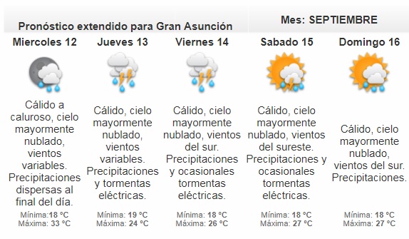 Según el meteorólogo de turno, Carlos Santacruz, la jornada se presentará cálida en gran parte del territorio nacional, y la probabilidad de lluvias es baja.