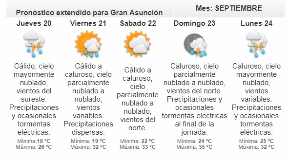 La Dirección de Meteorología emitió un boletín de alerta por tiempo severo para cinco departamentos. No descartan la ocasional caída de granizos.