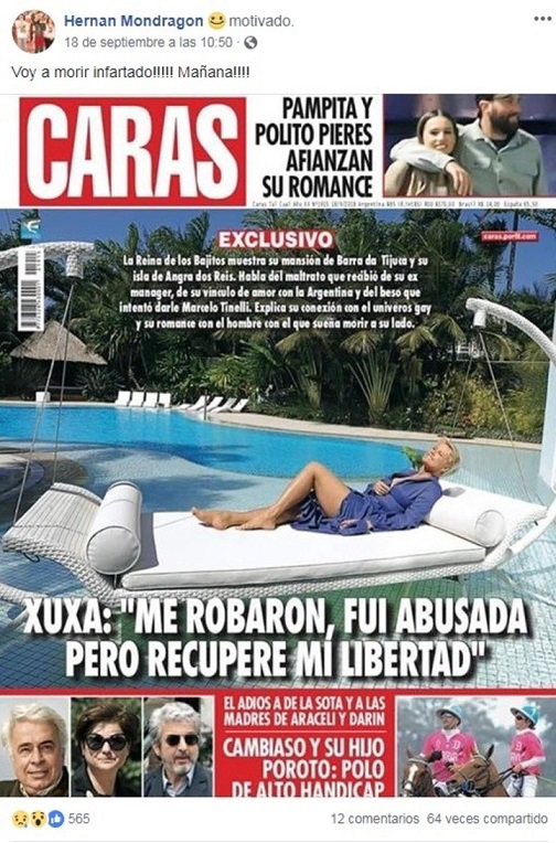 Pero lo que más llamó la atención fue la publicación en la que anunciaba que iba a morir de un infarto al ver a la brasileña, informó Clarín.