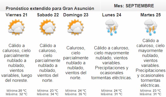 La meteoróloga de turno, Violeta González, indicó que debido al elevado índice de inestabilidad predominante en la región no se descarta que se generen en forma puntual fenómenos de tiempo severo durante la mañana de este jueves.