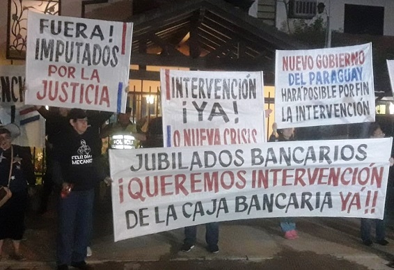Una importante cantidad de bancarios activos y jubilados elevaron su voz de protesta ante las supuestas irregularidades que se registran en la Caja Bancaria.