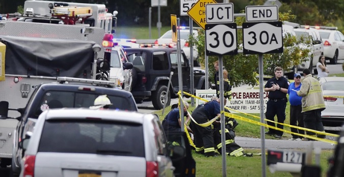 “Vi a mucha gente aquí, en el Apple Barrel, afuera, en el estacionamiento. Luego escuché gritos. Luego vi esta larga camioneta, un vehículo muy inusual aquí, en Schoharie, en los arbustos, y vaya que quedó destrozada, chocó contra un árbol”, explicó un testigo.