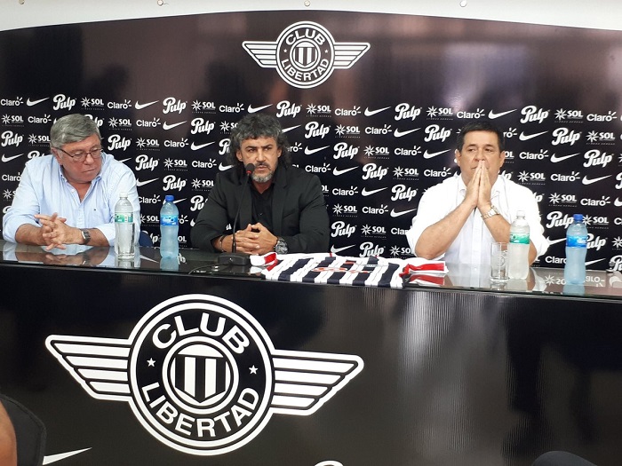 El nuevo entrenador de Libertad fue presentado, este martes, de la mano del presidente honorario del club, Horacio Cartes.