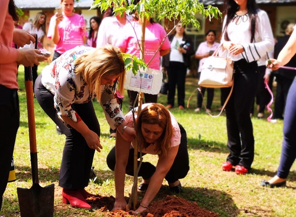 En otro momento, la ministra de la Mujer, Nilda Romero plantó un tajy de color rosado en conmemoración al octubre rosa.