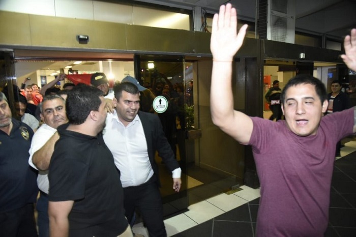 Varias personas llegaron hasta el aeropuerto para recibirlo y brindarle su apoyo con pancartas, banderas coloradas y cánticos.