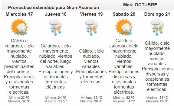 Según el meteorólogo de turno, Marco Maqueda, la probabilidad de precipitaciones es baja y se espera que las lluvias se registren desde el miércoles.