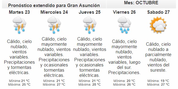 Según la meteoróloga de turno, Cinthia Espínola, la probabilidad de precipitaciones es alta, principalmente para el centro y norte del chaco, mientras que para el resto del país se estarían registrando chaparrones.