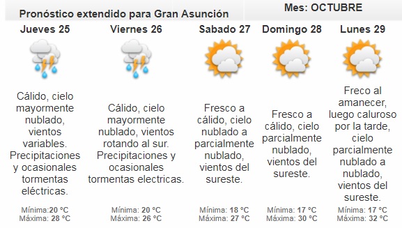 Según el meteorólogo de turno, Carlos Santacruz, la probabilidad de precipitaciones es alta y para la tarde no se descartan ocasionales tormentas eléctricas.