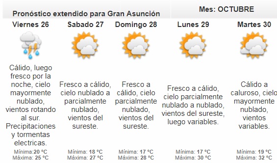 La Dirección de Meteorología pronostica una jornada cálida con precipitaciones dispersas.