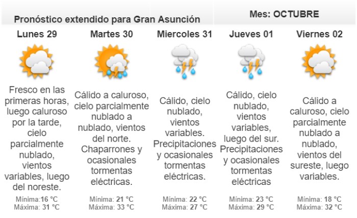 Este domingo, la jornada se presentará estable, pero con aumento de nubosidad y para el centro y norte Chaco, anuncian lluvias.