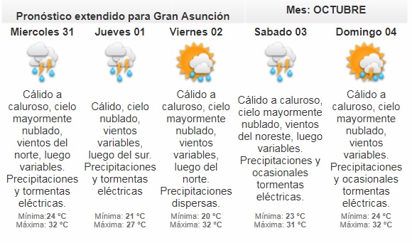 Según el meteorólogo de turno, Marco Maqueda, la probabilidad de precipitaciones irá en aumento desde este martes, especialmente sobre las áreas del bajo Chaco Centro y Sur y este de la región Oriental.