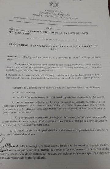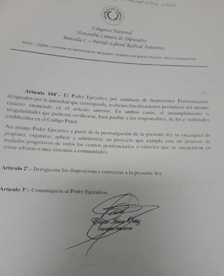 El legislador propone modificar la Ley 210/70, del Régimen Penitenciario en el que sugiere que los presos sean enviados a penitenciarías apartadas de las zonas urbanas.