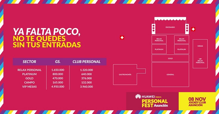 Las entradas y vales se podrán retirar únicamente de Casa Matriz de Personal, Oficina Comercial de Personal Palma y oficina comercial del Shopping Mariano.