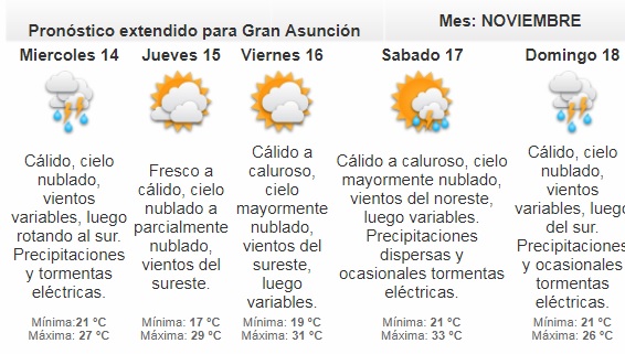 Según el meteorólogo de turno, Asmad Dami, la jornada será extremadamente calurosa e ingresaría un sistema de tormentas de Argentina, por lo que se esperan lluvias para la tarde.