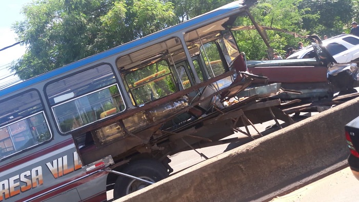 En el percance resultaron heridas siete personas, cuatro de ellas pasajeros del transporte público. Todos fueron derivados al Hospital Nacional de Itauguá para que sean asistidos.