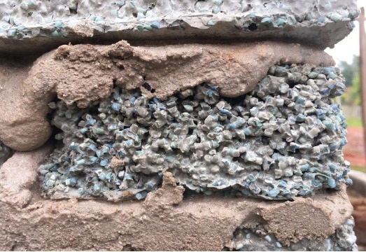 El primer paso fue la elaboración de ladrillos que incorporan plásticos triturados en su fabricación.