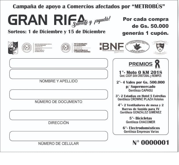 La rifa tiene como premio principal una moto, además de vales de compra en supermercados.