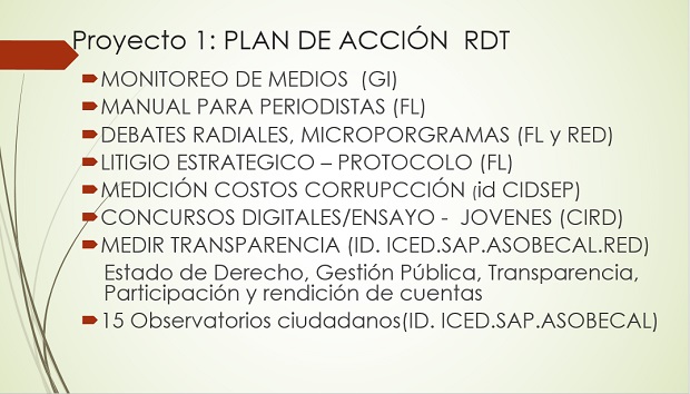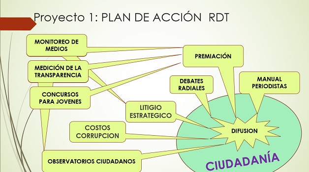 Manifestó que la idea de la organización es crear una red transparencia que, desde los medios de prensa, como la ciudadanía, las municipalidades y grupo de jóvenes que sean contralores y se dediquen a denunciar la corrupción.