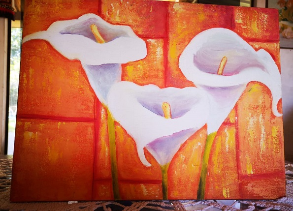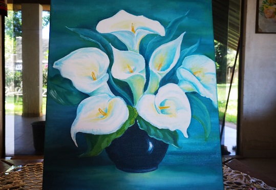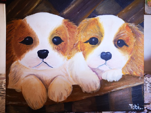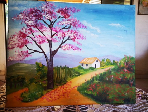 Tobías Céspedes Vera, de 13 años, pinta cuadros desde los seis años. Hace poco tiempo decidió venderlos, de modo a ayudar a su madre, para solventar los gastos de la casa. El adolescente recibe gran cantidad de pedidos.