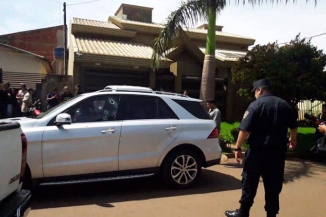 Los datos policiales indican que el sicario disparó contra la camioneta Mercedes Benz color plata con chapa ZAP484 donde se encontraba Alvarenga.