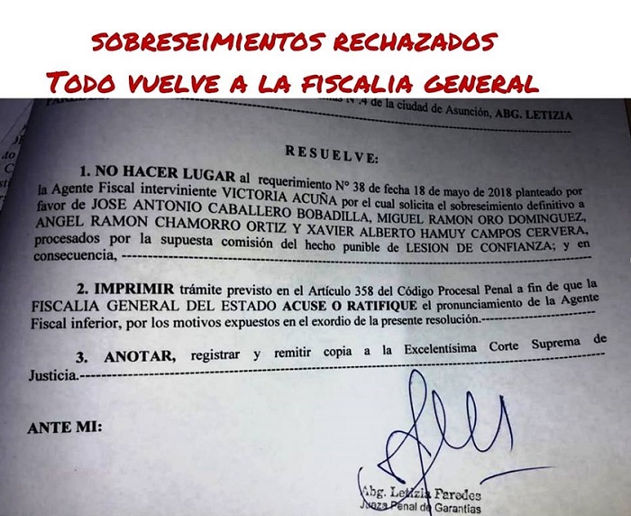 Acuña había pedido el sobreseimiento de los procesados y directivos de la Caja Bancaria, sin embargo una juez falló en contra.