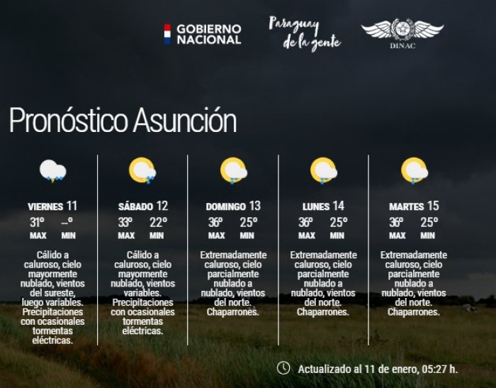 Sin embargo, nuevamente entre el sábado y el domingo se prevé que predomine el ambiente extremadamente caluroso sobre todo el territorio nacional.